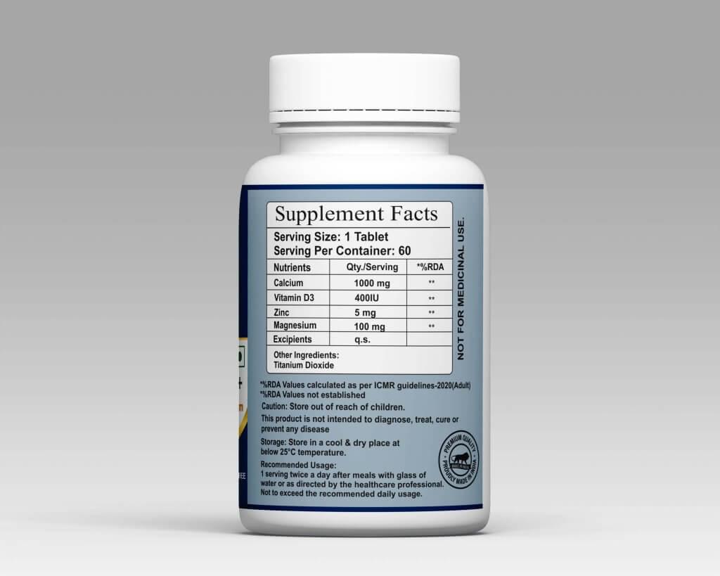 Valkyrine Calcium Tablets | Vitamin D3 + Zinc | Vegan & Non-GMO (60 Tabs)