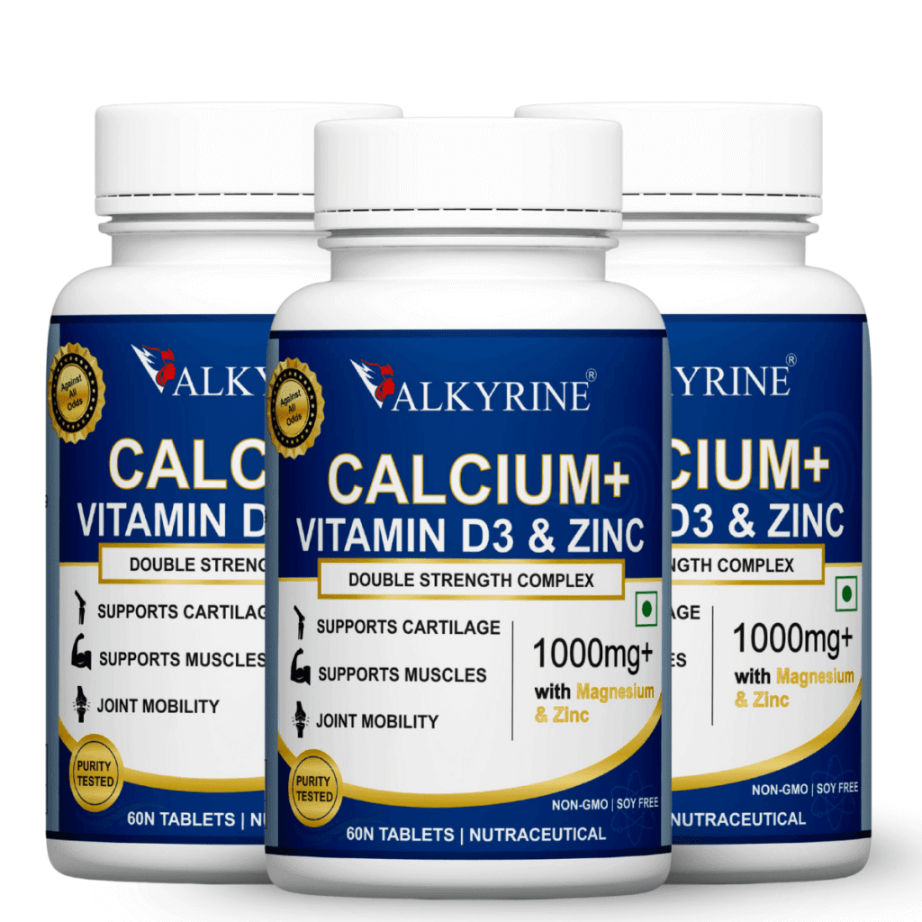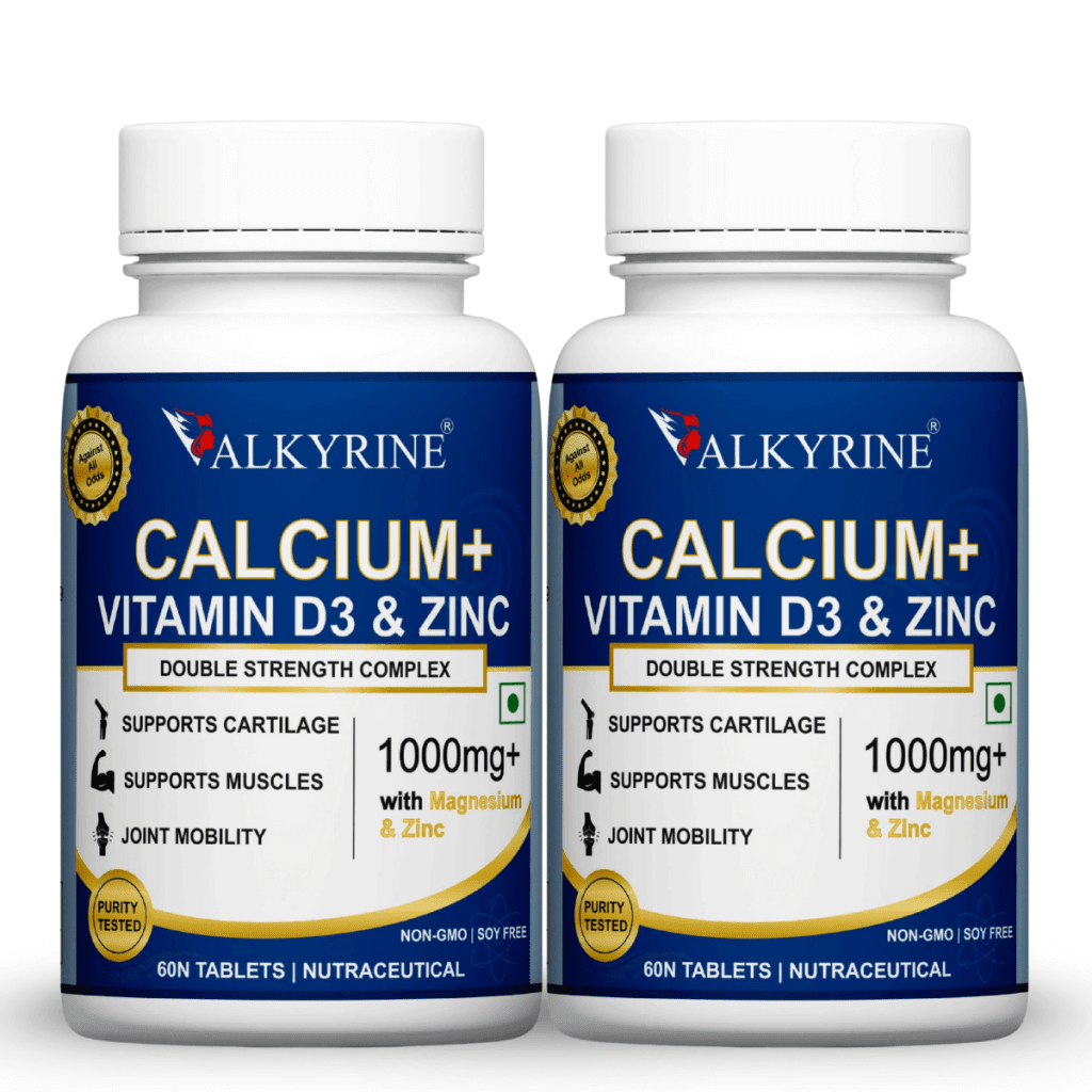 Valkyrine Calcium Tablets | Vitamin D3 + Zinc | Vegan & Non-GMO (Pack of 2)