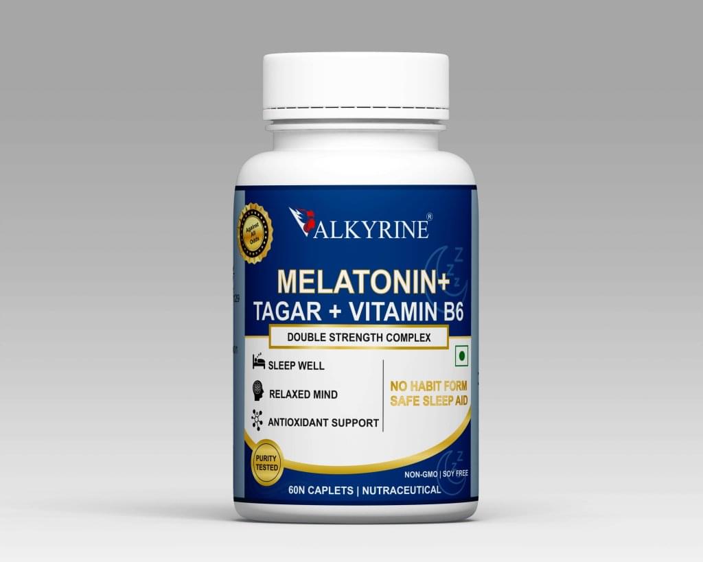 Valkyrine Melatonin 5mg Capsules with Tagar & Vitamin B6 | Fast-Acting Sleep Support (60 Capsules)