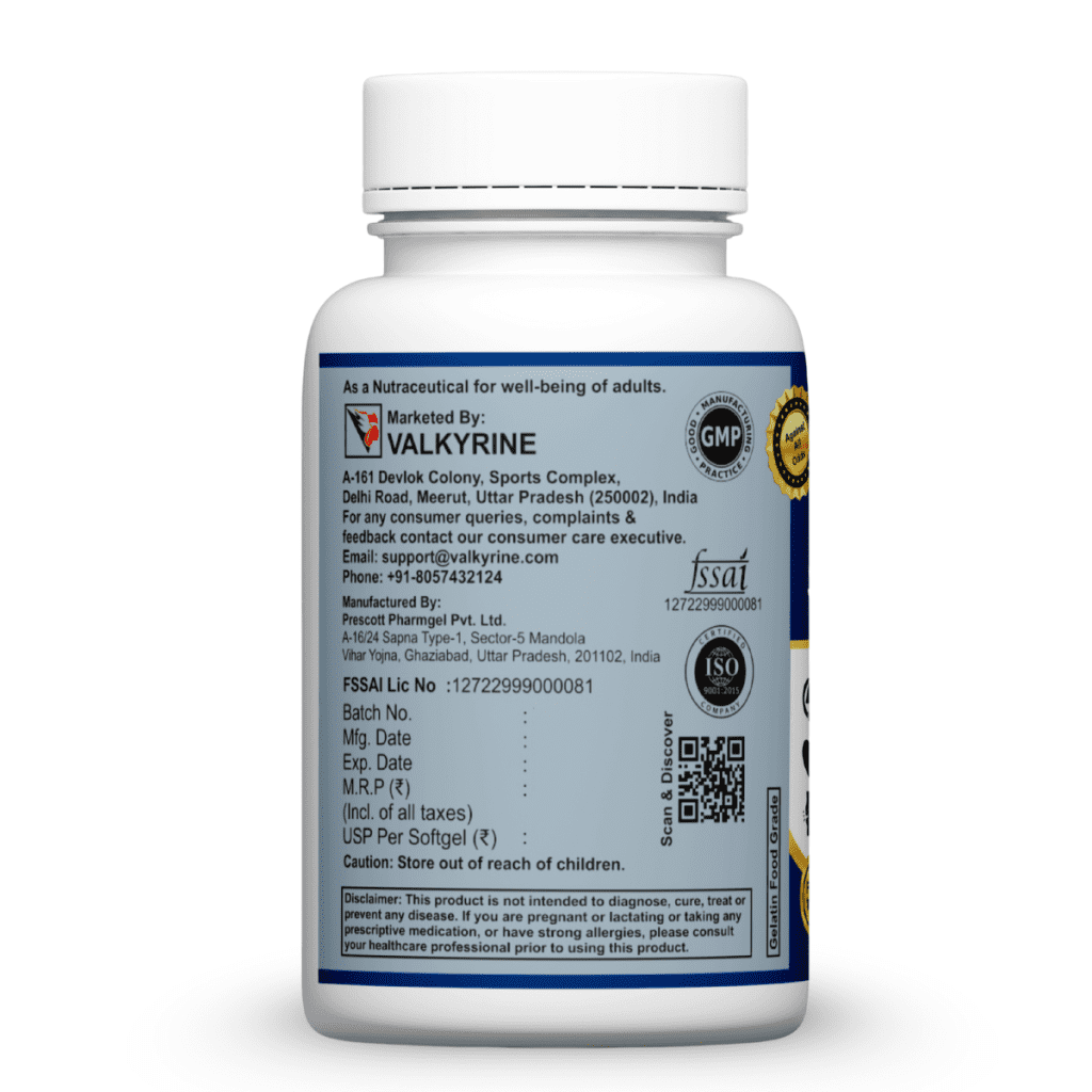 Valkyrine Omega 3 Fish Oil (1000 mg) with 180mg EPA and 120mg DHA
