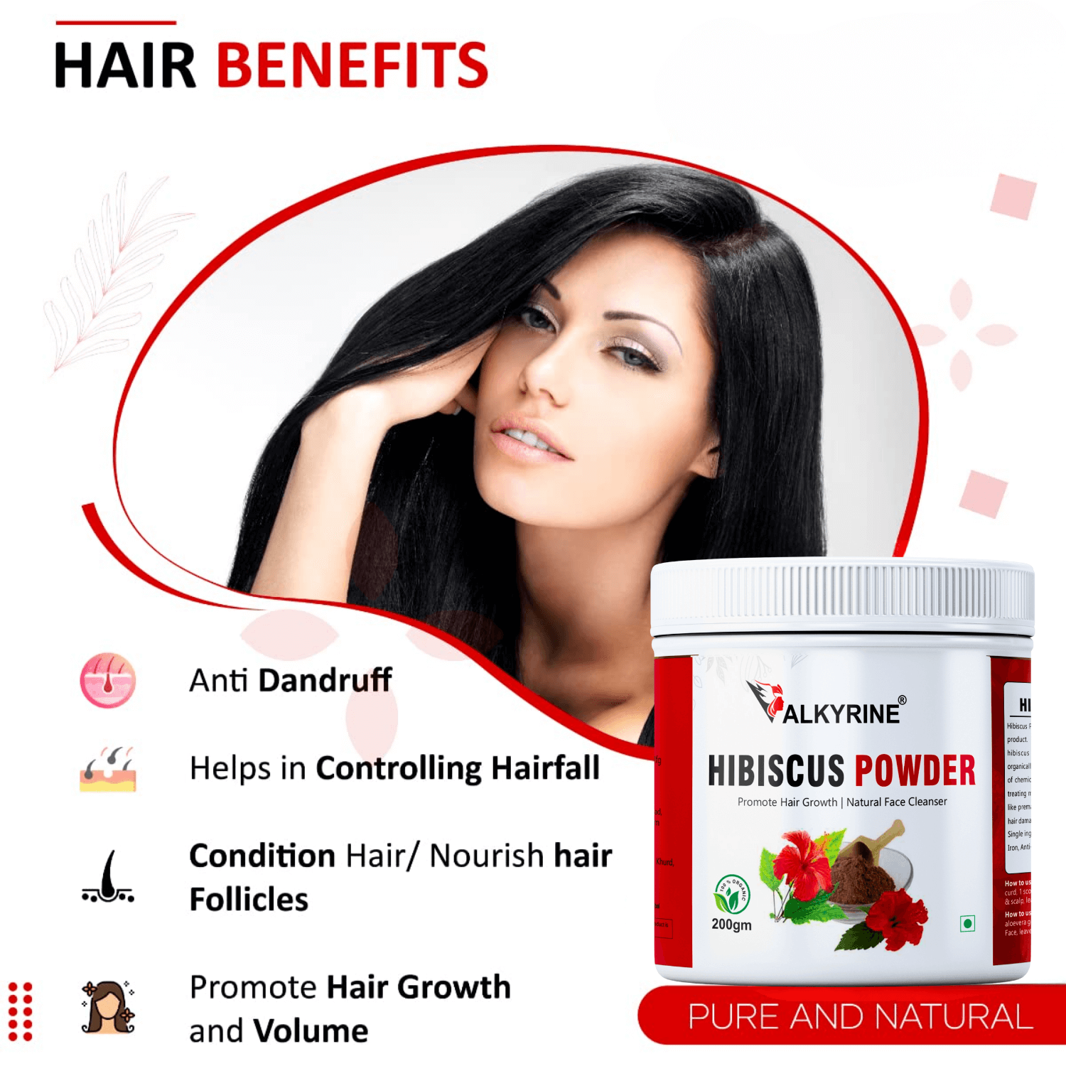 Hibiscus Embrace beauty from within with Valkyrine Organic Hibiscus Powder, a natural solution for radiant skin and hair. Our organic Hibiscus Powder is rich in antioxidants, promoting healthy skin, hair growth, and overall well-being.